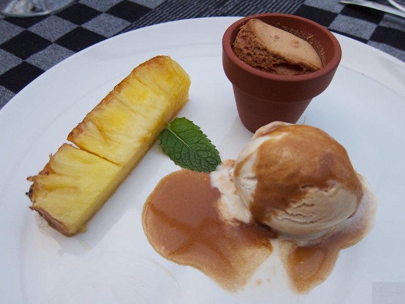 Rookijs met cakeje en gegrilde ananas