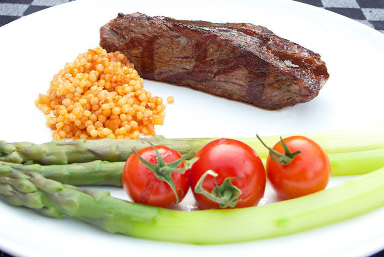 Bavette met wijnjus en parelcouscous