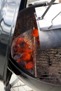 niet, dan komt er een geweldige vonkenregen van de briketten af wanneer je de kolen op het rooster